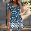 Летняя мода женские V-образный вырез короткий рукав пятнистый принт платье сексуальные короткие юбки платья