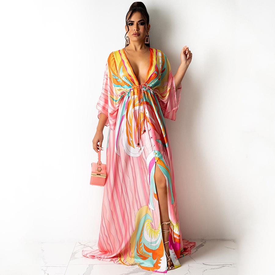 2025 новая женская одежда, весна-лето, повседневный стиль отдыха, платье с V-образным вырезом и принтом