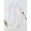 Летний женский топ с короткими рукавами и шорты, комплект из 2 предметов, пижама женская, модная, повседневная, свободная, с бантом, кардиган, пижама, комплект