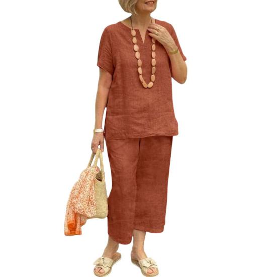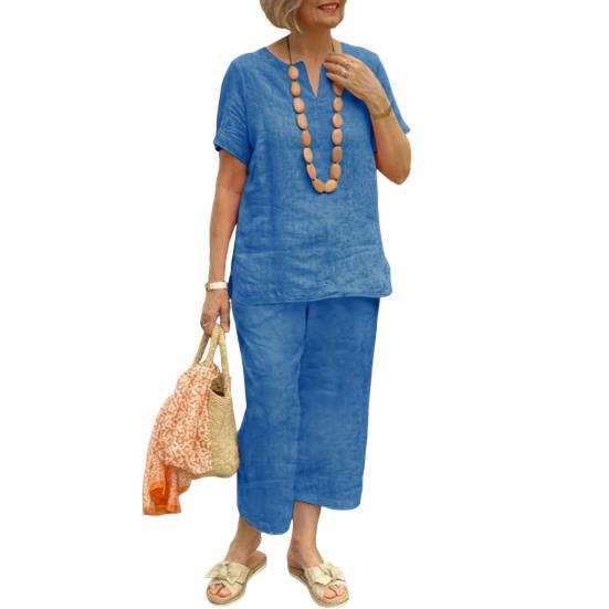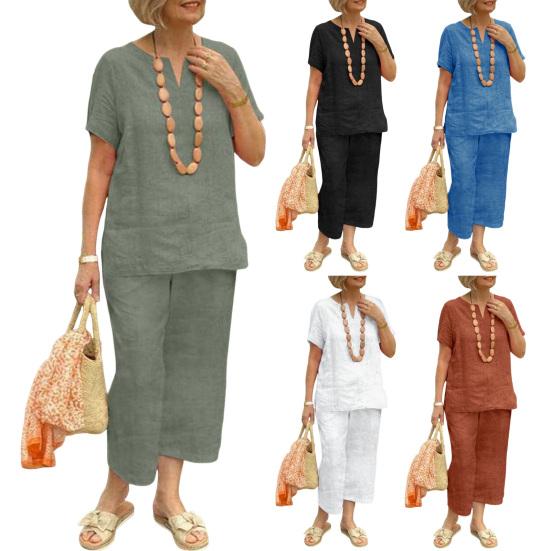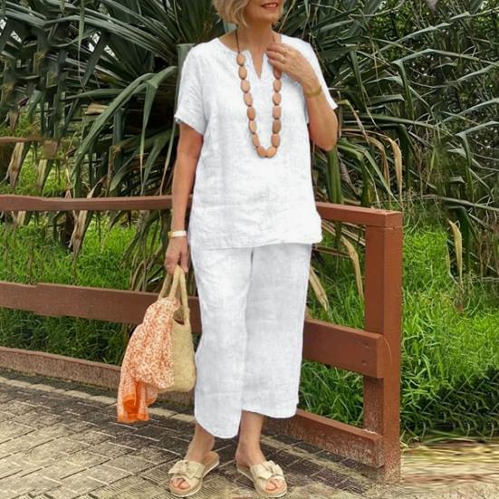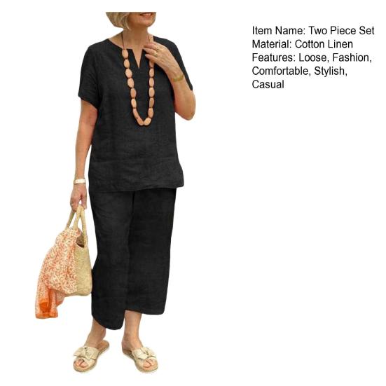 Этот комплект из двух предметов изготовлен из смеси хлопка и льна, представляющей собой дышащую и легкую ткань, которая обеспечивает комфорт весной, летом и осенью.. Свободный крой не только дополняет ваш силуэт, но и обеспечивает комфорт.. Простой однотонный дизайн делает его универсальным для ежедневного ношения и подходит для разных типов телосложения и возрастных групп..