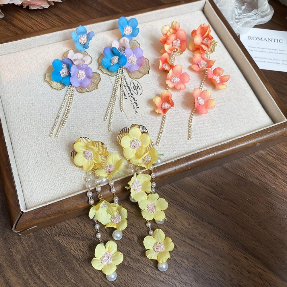 Серьги-кисточки с лепестками из стекла и кристаллов, милые женские украшения, новые цветочные серьги-подвески, весна-лето