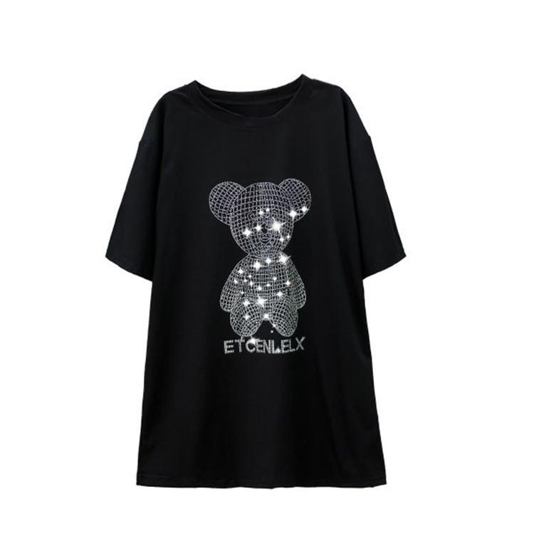 Футболка средней длины Silver Diamond Shiny Iron Diamond, женская, с короткими рукавами, весенне-летняя, женская