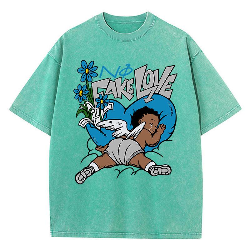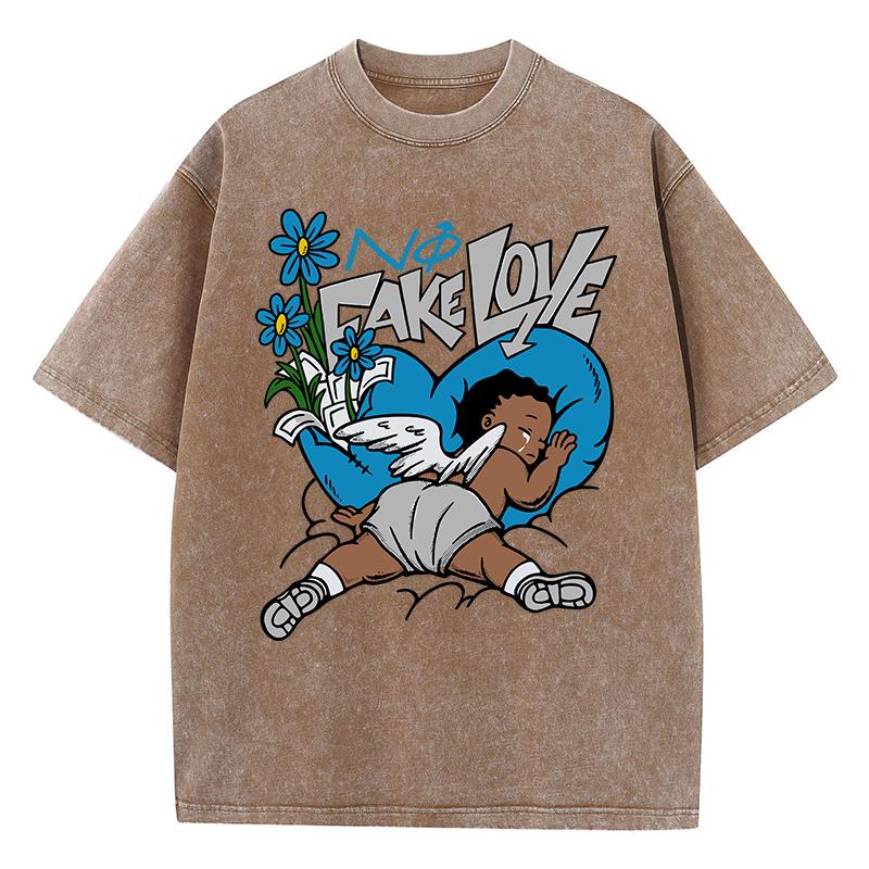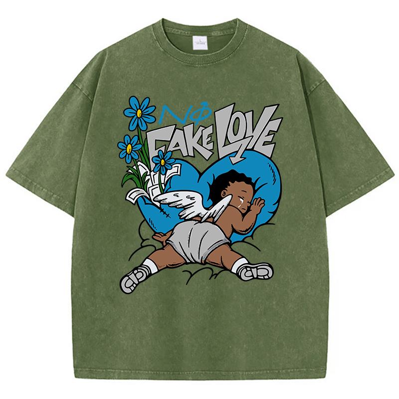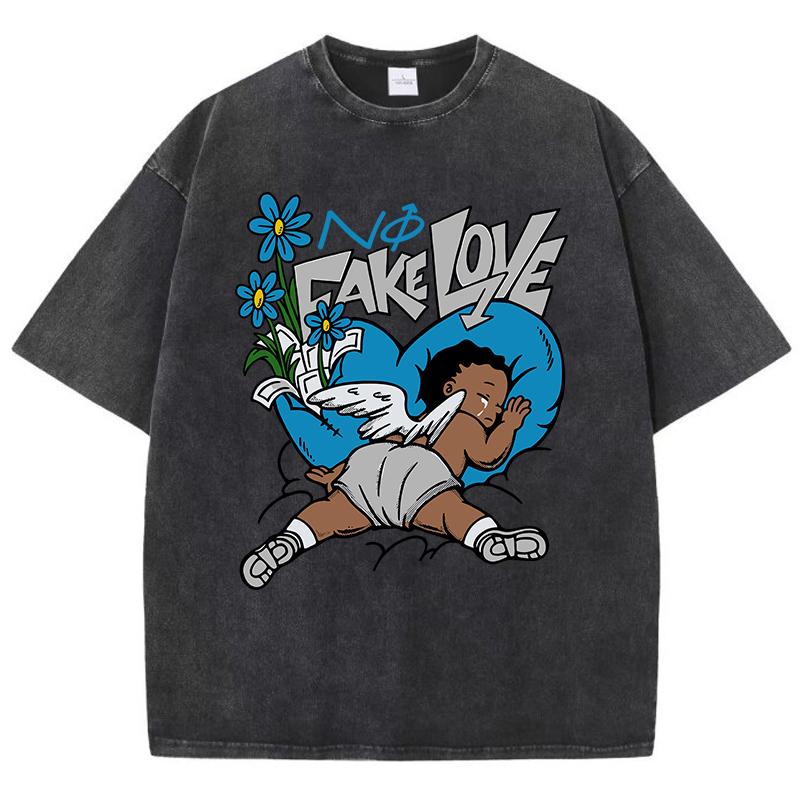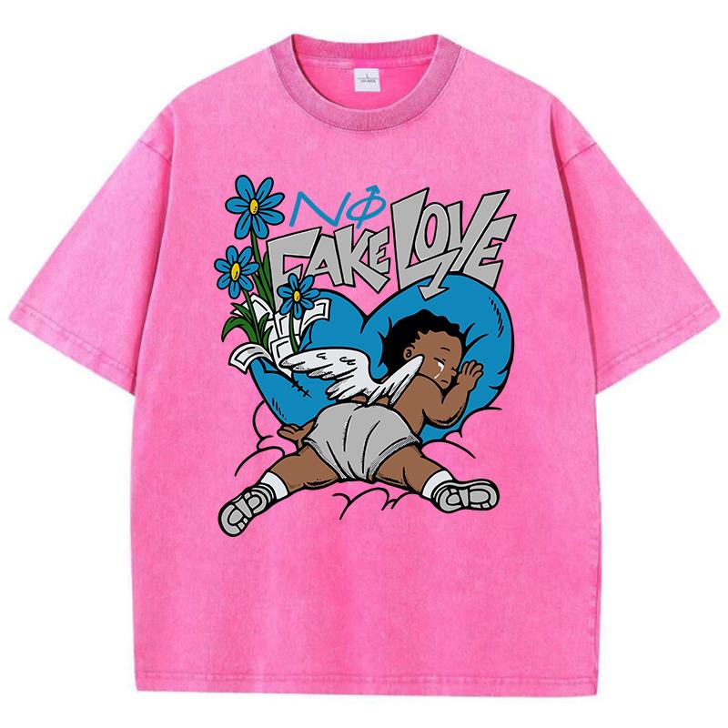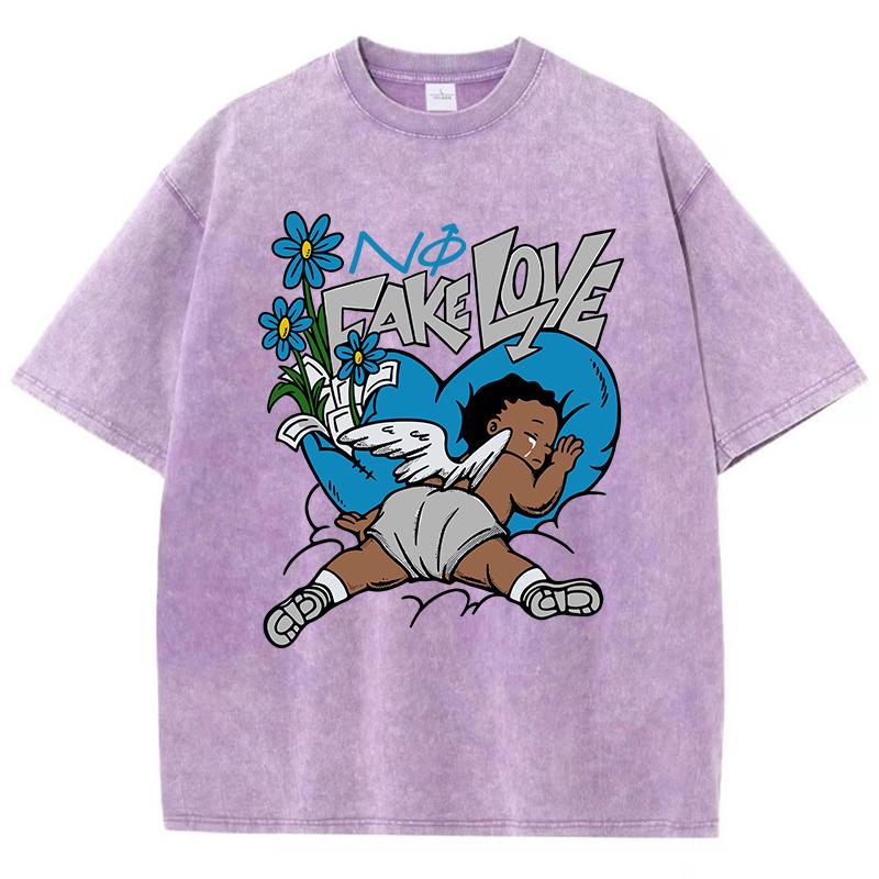 Женские футболки с кислотной стиркой Fake Love Funny Manga Prints Tees Crewneck Cotton Oversize Short Sleeve Clothes