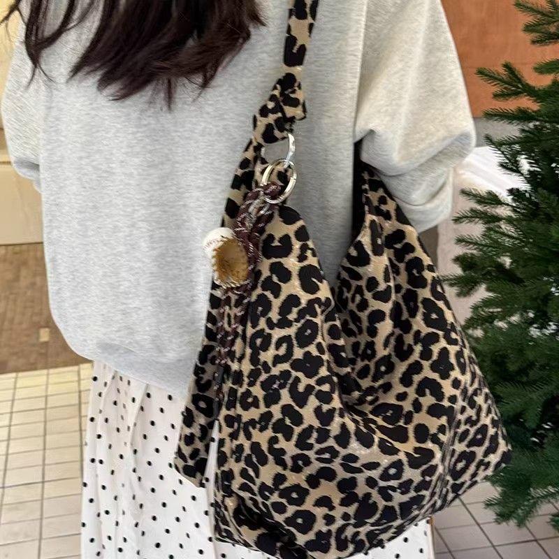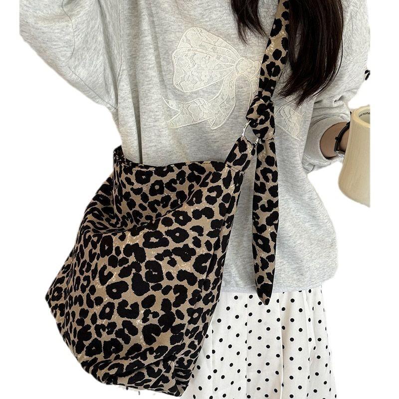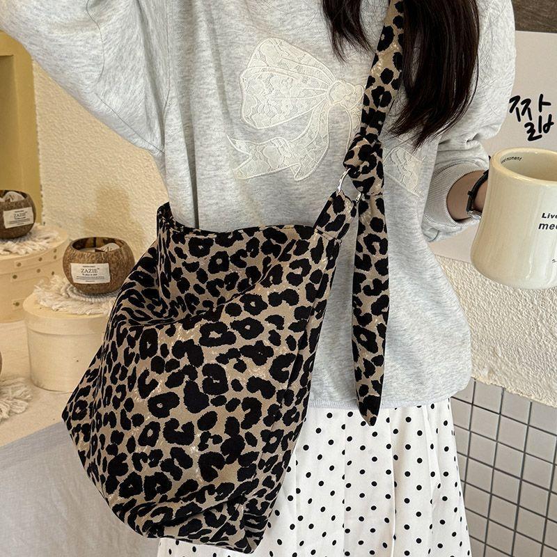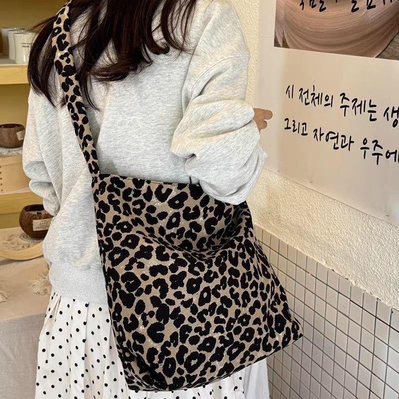 Корейская холщовая сумка с леопардовым принтом в стиле Ins для женщин, осенне-зимняя сумка через плечо большой вместимости для студентов колледжа, чтобы ходить на работу, игрушки для занятий