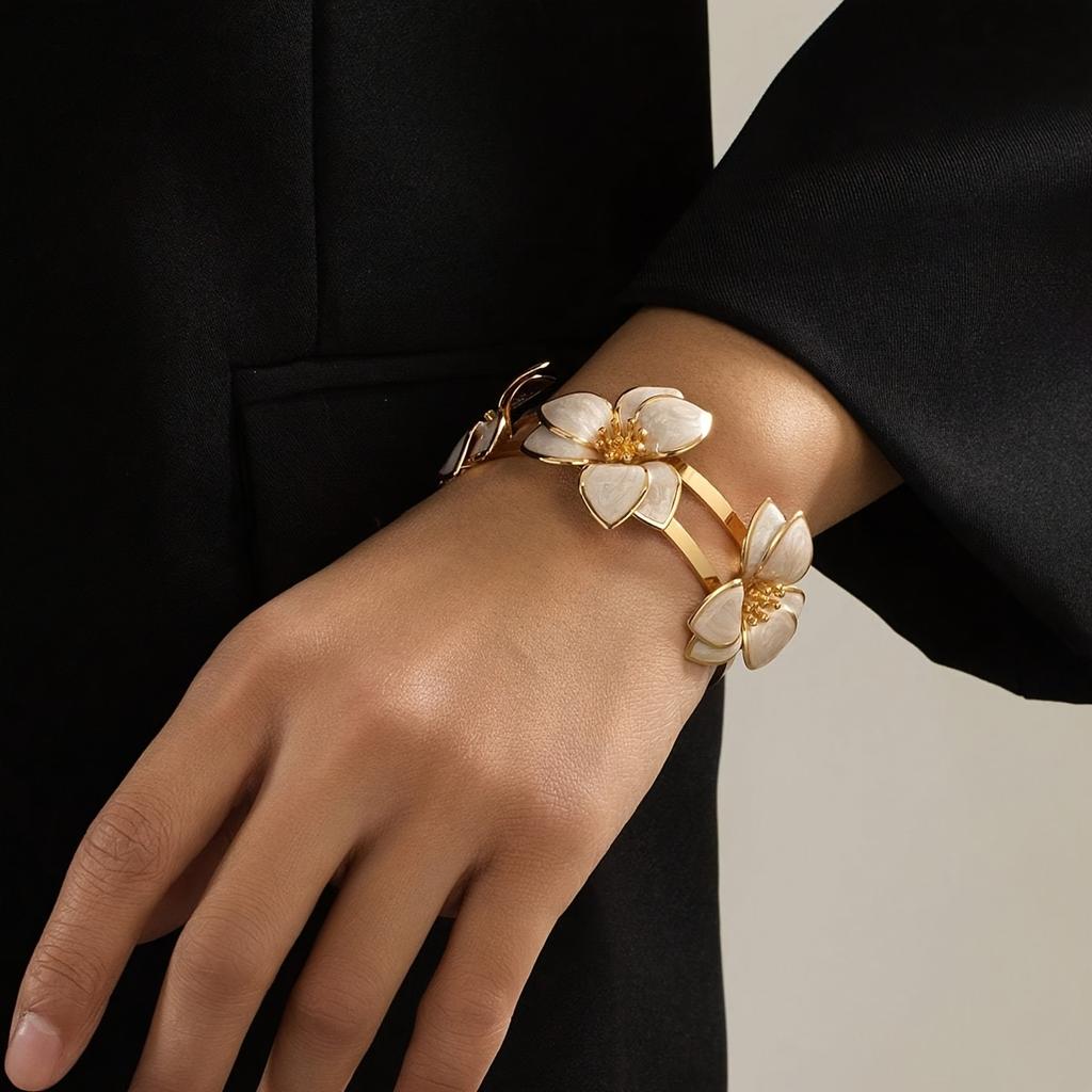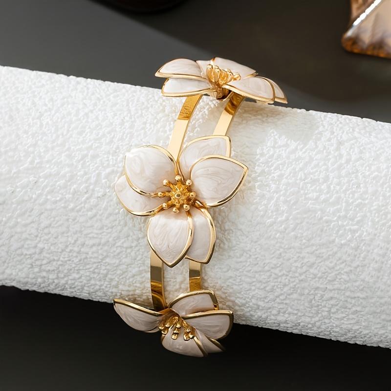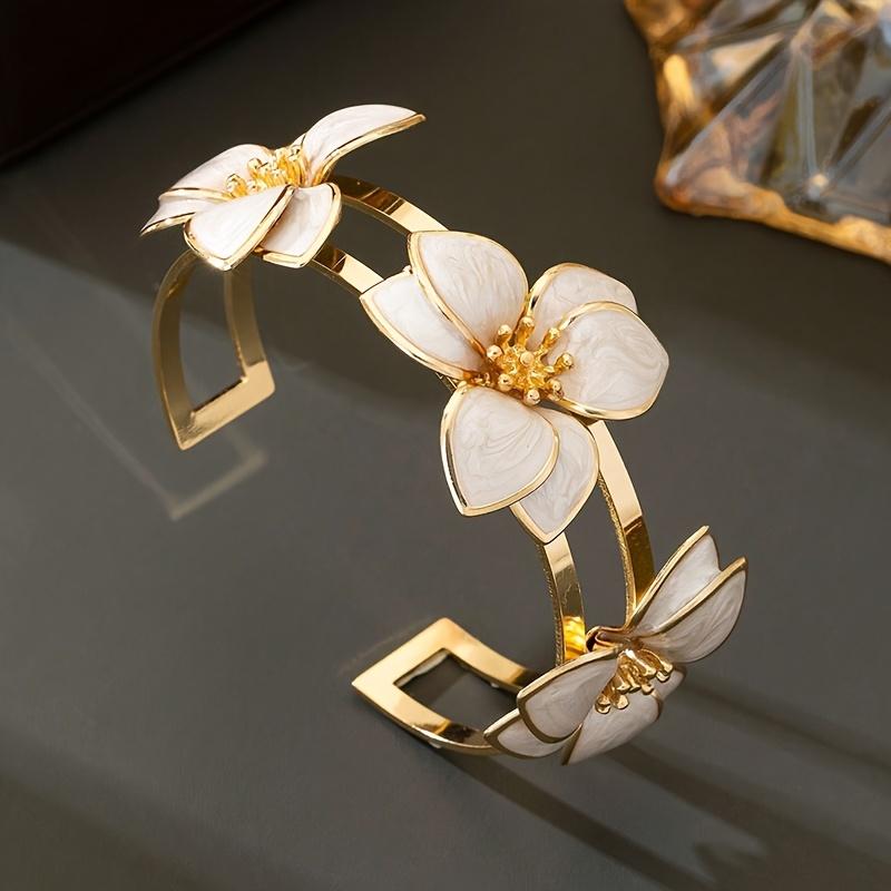 Элегантный зеленый цветочный открытый браслет-манжета для женщин