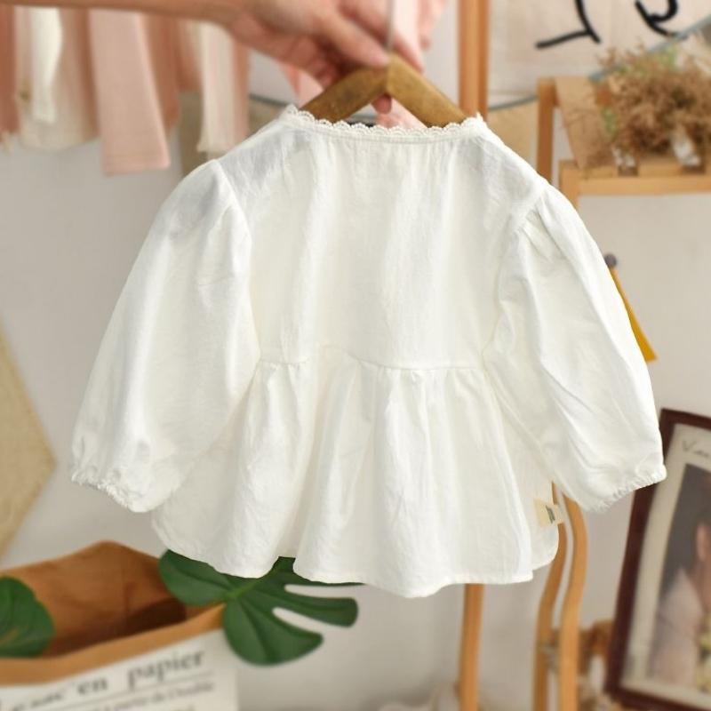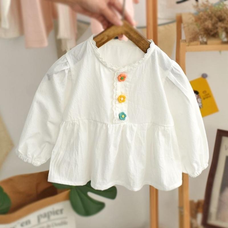 Детская одежда Футболка для девочек Детская повседневная белая свободная с длинными рукавами Детская однотонная одежда Детская одежда Осенняя хлопковая толстовка