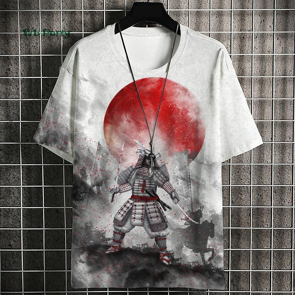 Мужская футболка с рисунком японского самурая, 3D-принт Ukiyo-E, короткий рукав, свободный топ Harajuku, летняя мужская повседневная одежда