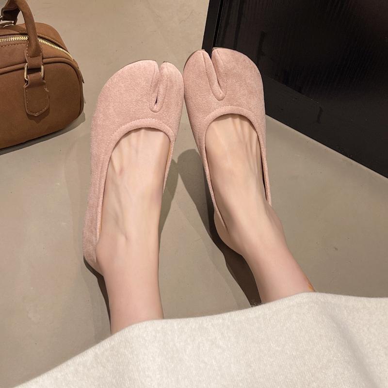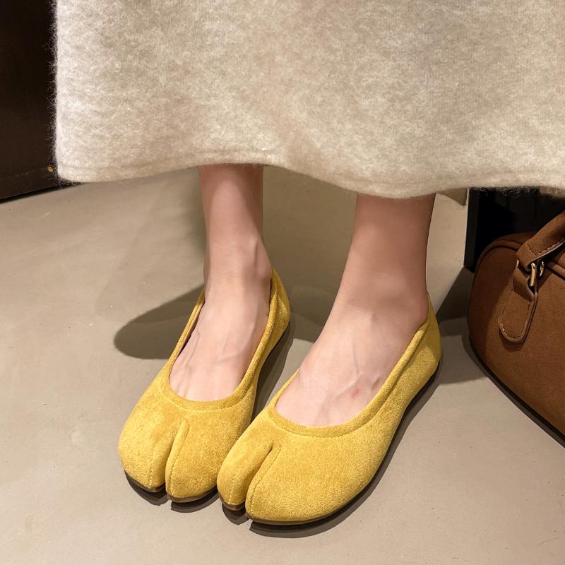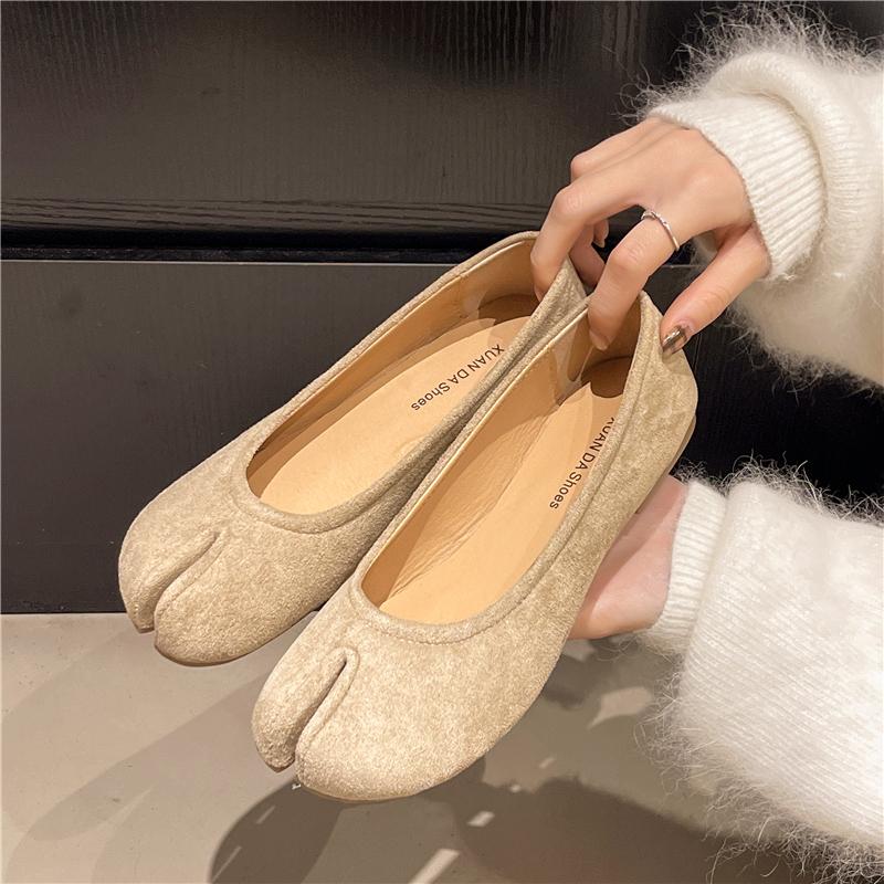 Японский стиль 2025 весна новые туфли ниндзя женская мода повседневные удобные кожаные лоферы на плоской подошве с раздельным носком балетки