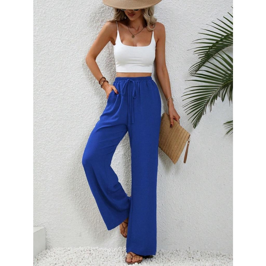 Женские весенне-летние новые однотонные широкие брюки с завышенной талией, повседневные брюки