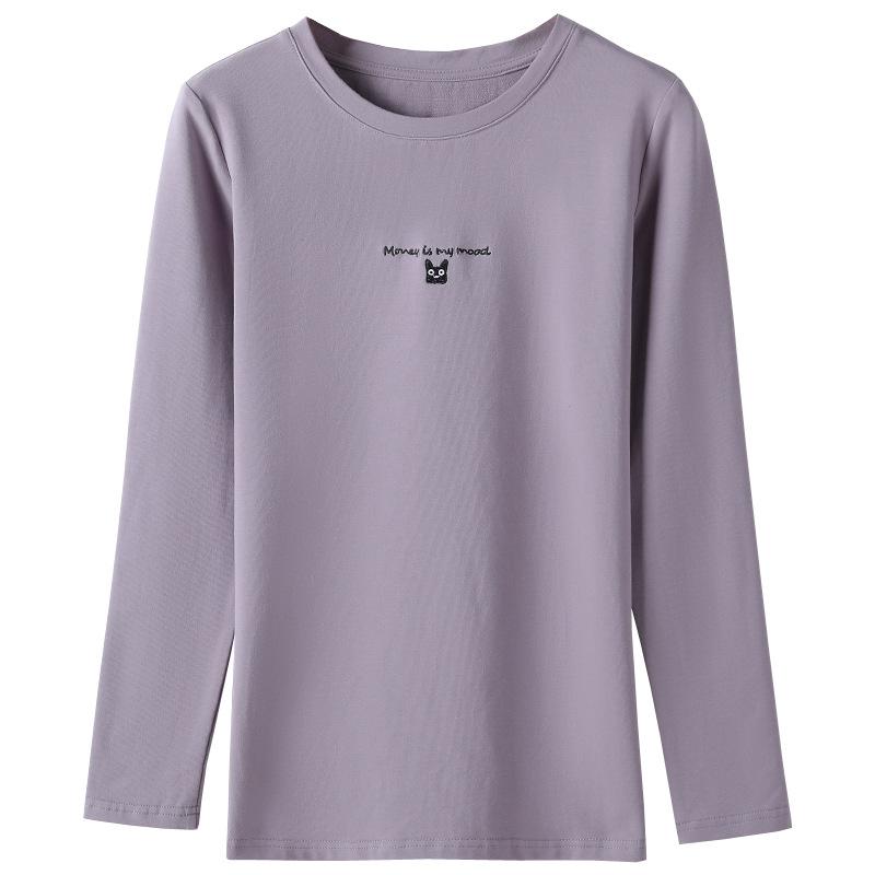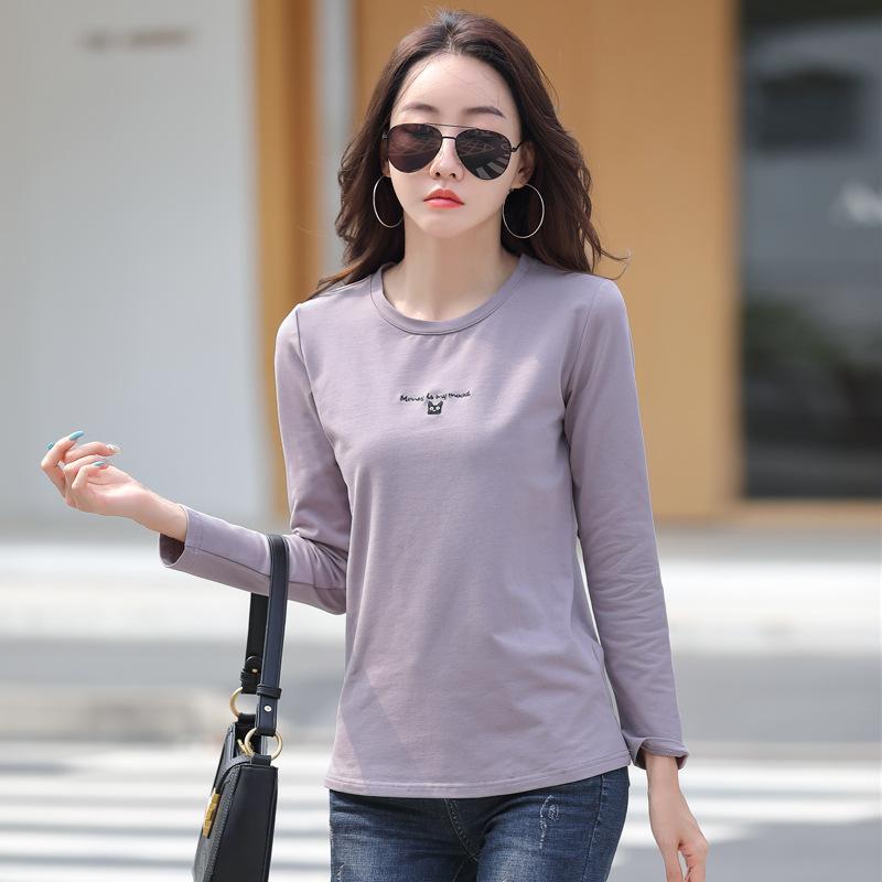 Женская футболка с круглым вырезом и длинными рукавами, осенне-зимняя вышивка в корейском стиле, размер плюс, базовая рубашка, 95% хлопок