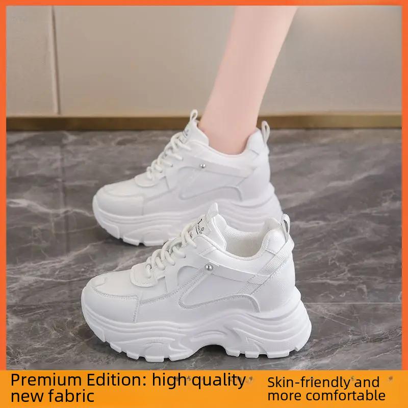 Внутренняя часть обуви для пап, увеличивающая рост, женская, осень 2024 года, новая спортивная обувь, универсальная, на высоком каблуке, с толстой подошвой, для миниатюрных женщин