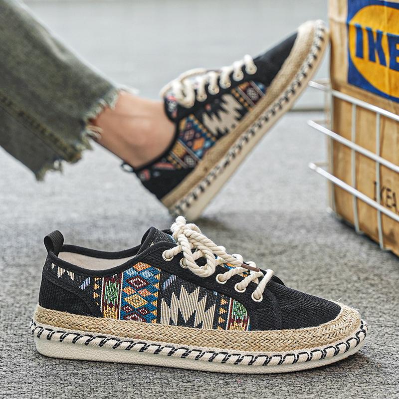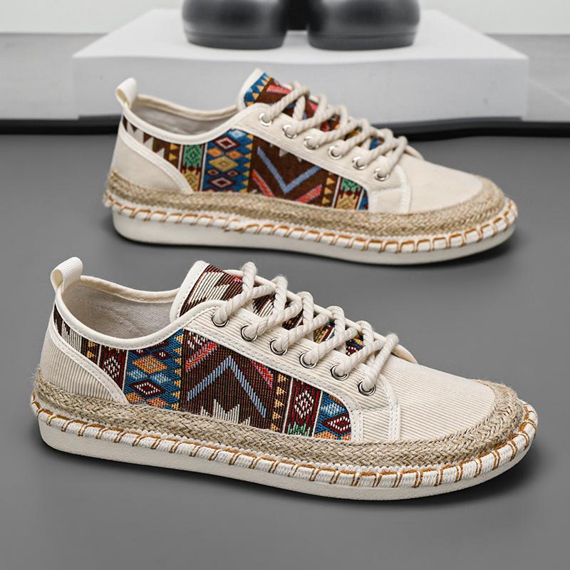 Новые мужские туфли в этническом стиле, летние дышащие повседневные туфли, мужские туфли на плоской подошве из парусины, большой размер 45, рыбацкие туфли, мужские эспадрильи