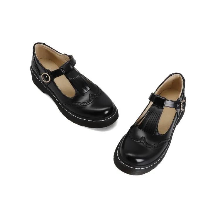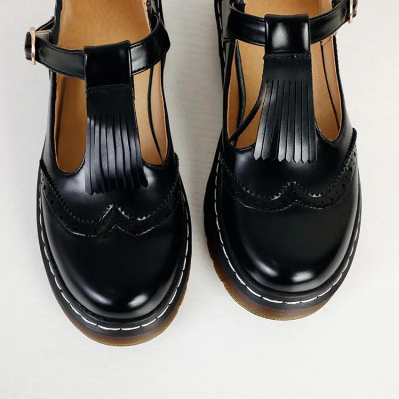 Ретро Винтаж Стиль Бахрома Кисточки Полые Вырезанные Цветы Броги Туфли Женские Т-образный Ремешок Пряжка Подростковые Девочки Туфли На Плоской Подошве Для Колледжа 43