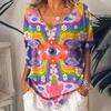 Футболки для женщин Лето 2024 Хиппи женская футболка Топ с пайетками Модные топы с коротким рукавом и принтом Большие размеры Свободные футболки Рубашка
