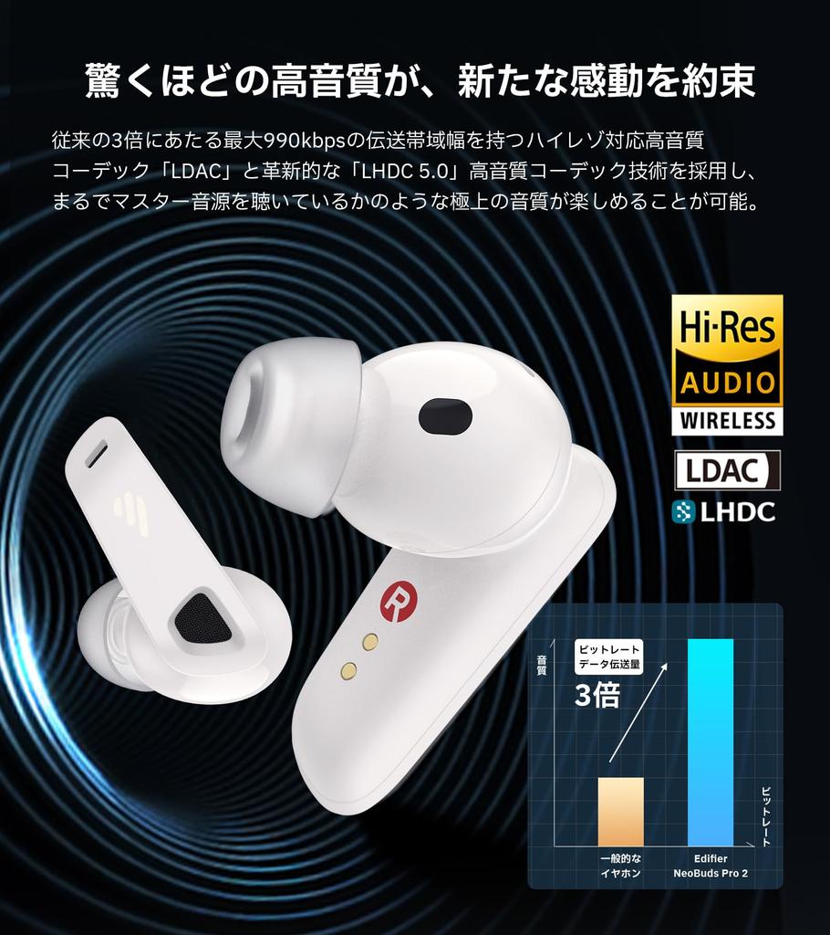 Удивительно высокое качество звука: Сертифицирован как «Hi-Res Wireless» и совместим со стандартными в отрасли технологиями высококачественных аудиокодеков высокого разрешения «LDAC» и «LHDC».. Благодаря сочетанию высокопроизводительного сбалансированного арматурного драйвера, который превосходно воспроизводит тонкие и плавные средние и высокие частоты, с многослойным диафрагменным динамическим драйвером, который специализируется на мощных басах, можно создавать прекрасный звук как с глубокими ритмами, так и с прозрачными мелодиями.