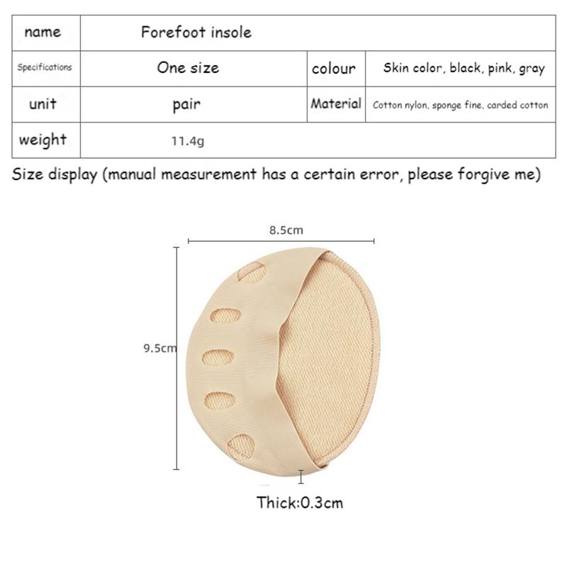 2 шт. женские подушечки для передней части стопы, стельки для уменьшения боли в пятке, мягкие дышащие, амортизирующие, регулируемые по размеру, половинные вставки