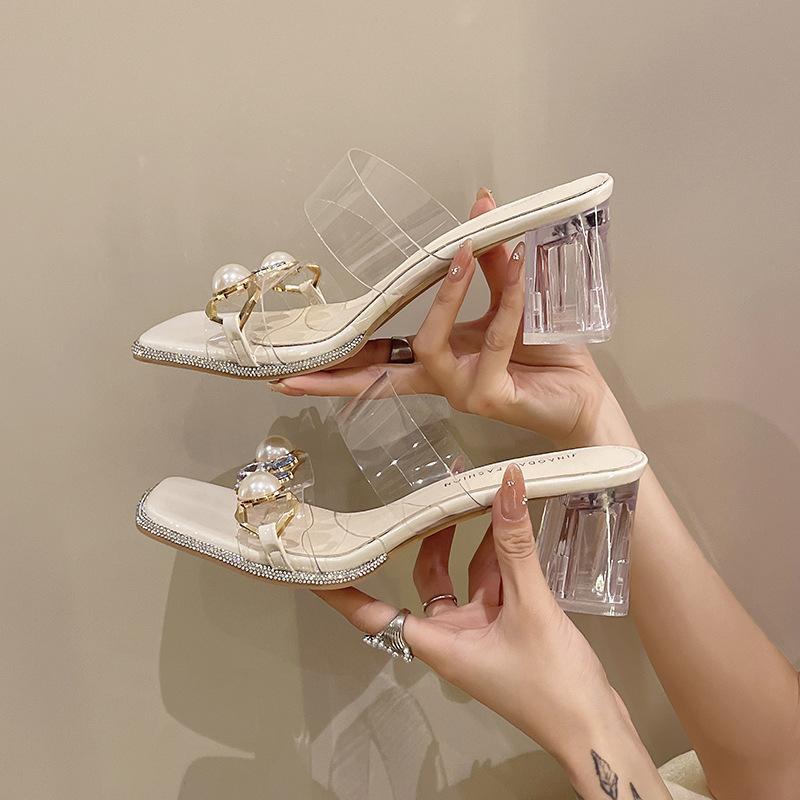 Французские босоножки со стразами и прозрачным каблуком, женские, лето 2025, новые, на толстом каблуке, модная верхняя одежда на высоком каблуке, классные женские тапочки — купить товар онлайн с бесплатной доставкой до всему миру!