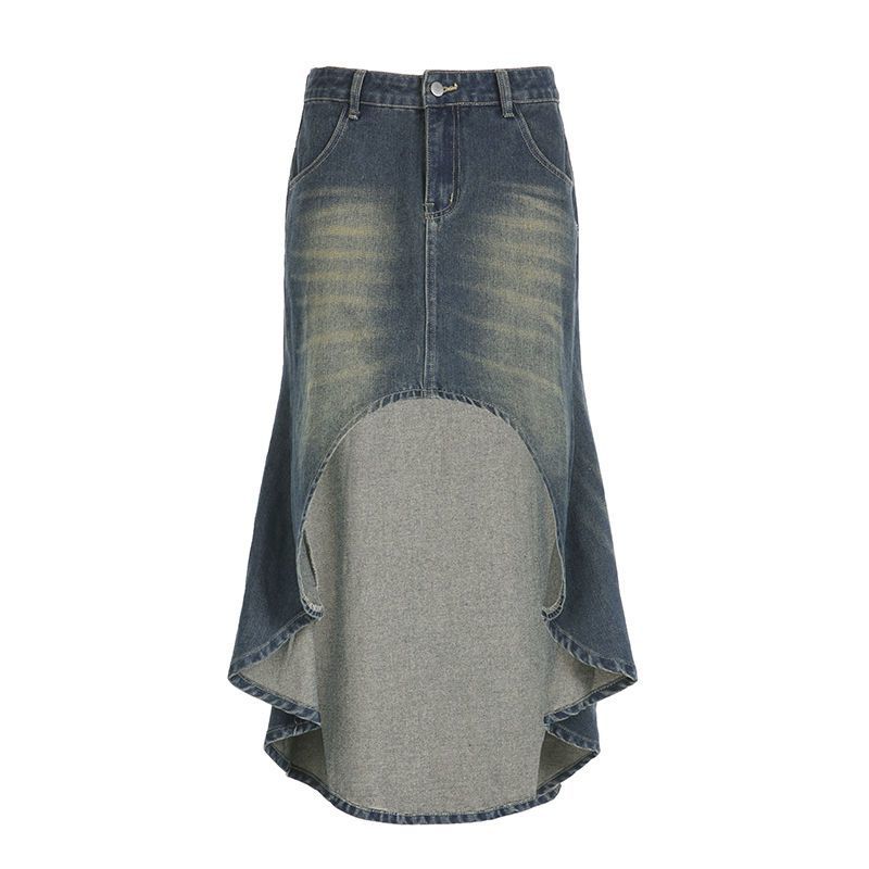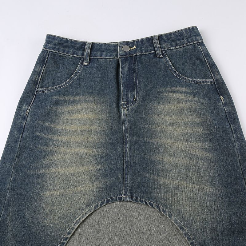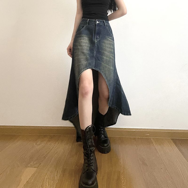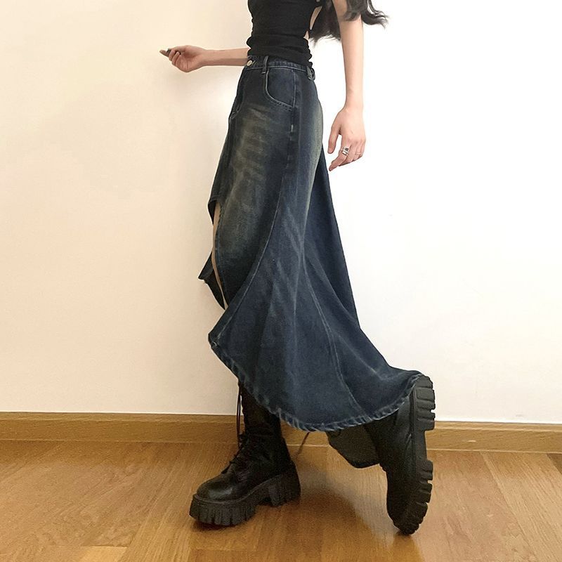 Летняя американская ретро винтажная нестандартная джинсовая юбка длинная юбка для женщин с высокой талией и стройной фигурой пикантная юбка для девушек