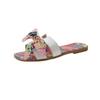 Тапочки с цветной лентой и бантом на плоской подошве, летняя женская новая верхняя одежда с цветочным принтом