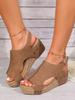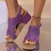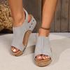 Большой размер 2025 лето новые сандалии на танкетке толстой подошве на липучке с открытым носком заклепки маффин пайетки женские сандалии