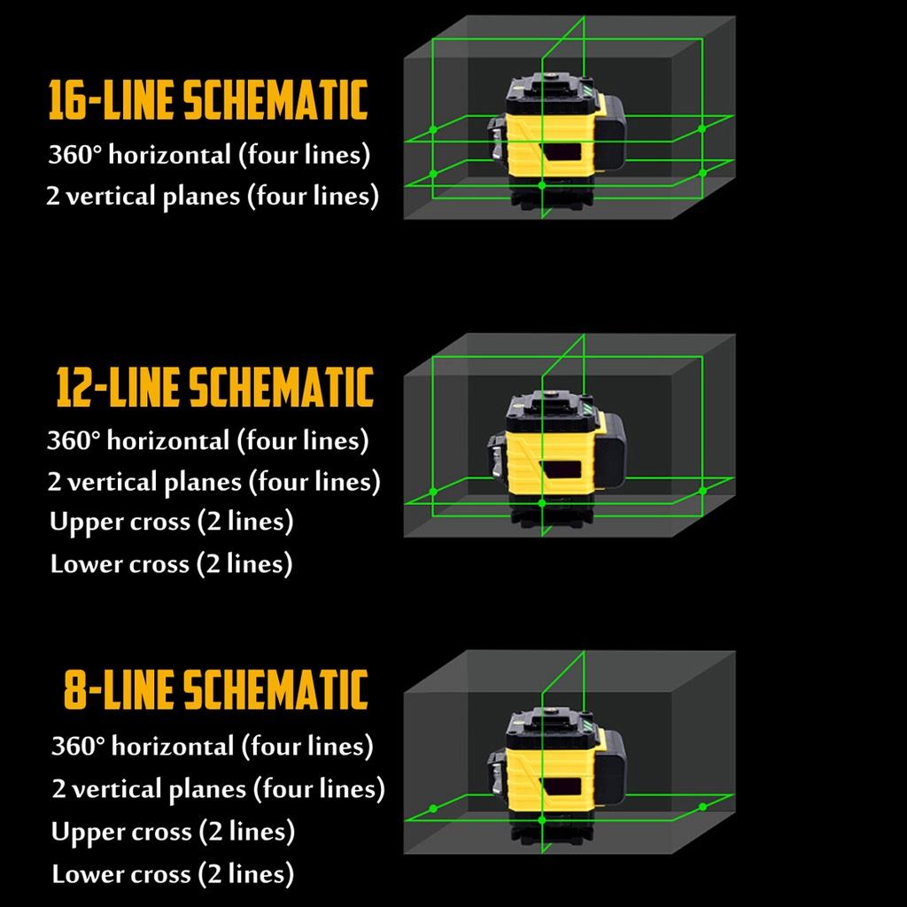 4D 360 16-линейный лазерный уровень Самовыравнивающийся лазерный уровень Вертикальный горизонтальный крест с зелеными линиями Лазерный нивелир со штативом