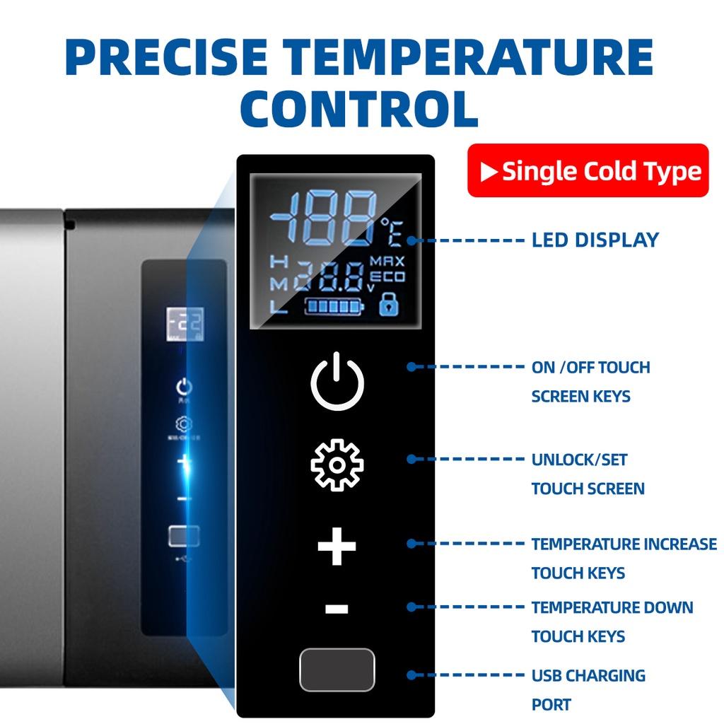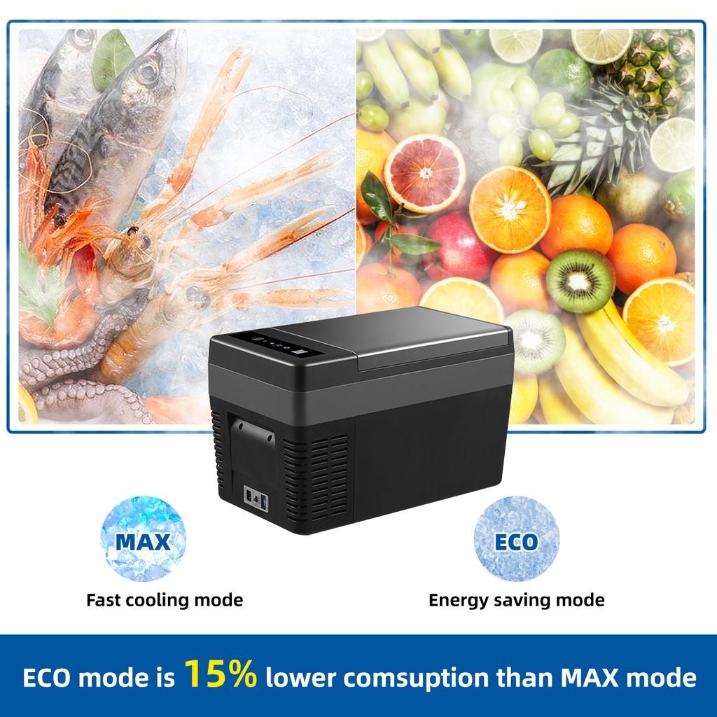- БЫСТРОЕ ОХЛАЖДЕНИЕ: Используя мощный компрессор, пустой холодильник может остыть до -0 °C (около 32°F) примерно за 15 минут. Этот портативный автомобильный холодильник имеет два режима охлаждения, включая макс. (быстрое охлаждение) и эко (сохранение энергии). Мороженое можно заморозить, свежие продукты также можно сохранить,