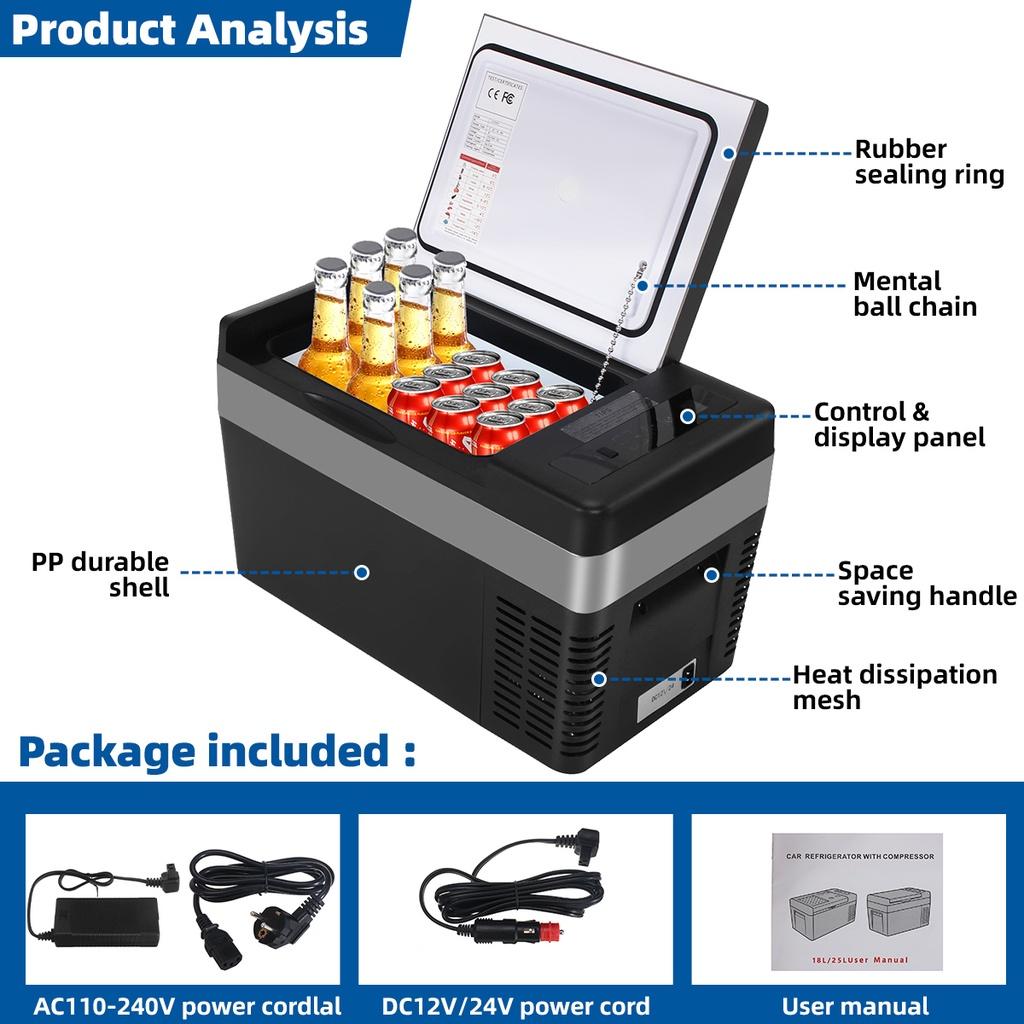 - РАЗЛИЧНЫЕ ОБЛАСТИ ПРИМЕНЕНИЯ: Автомобильный кулер можно использовать в вашем автомобиле, RV, лодке, кемпинге, на открытом воздухе, просто подключите прикуриватель, чтобы использовать вход DC 12V / 24V.