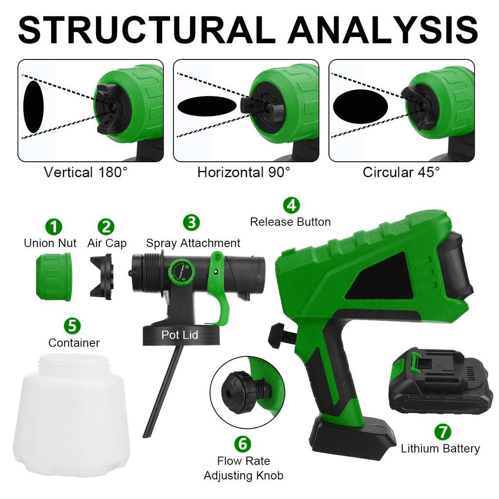 Электрический беспроводной распылитель 1000 мл, 1000 Вт, бытовой распылитель краски, контроль расхода высокого давления, легкий аэрограф для батареи Makita 18 В