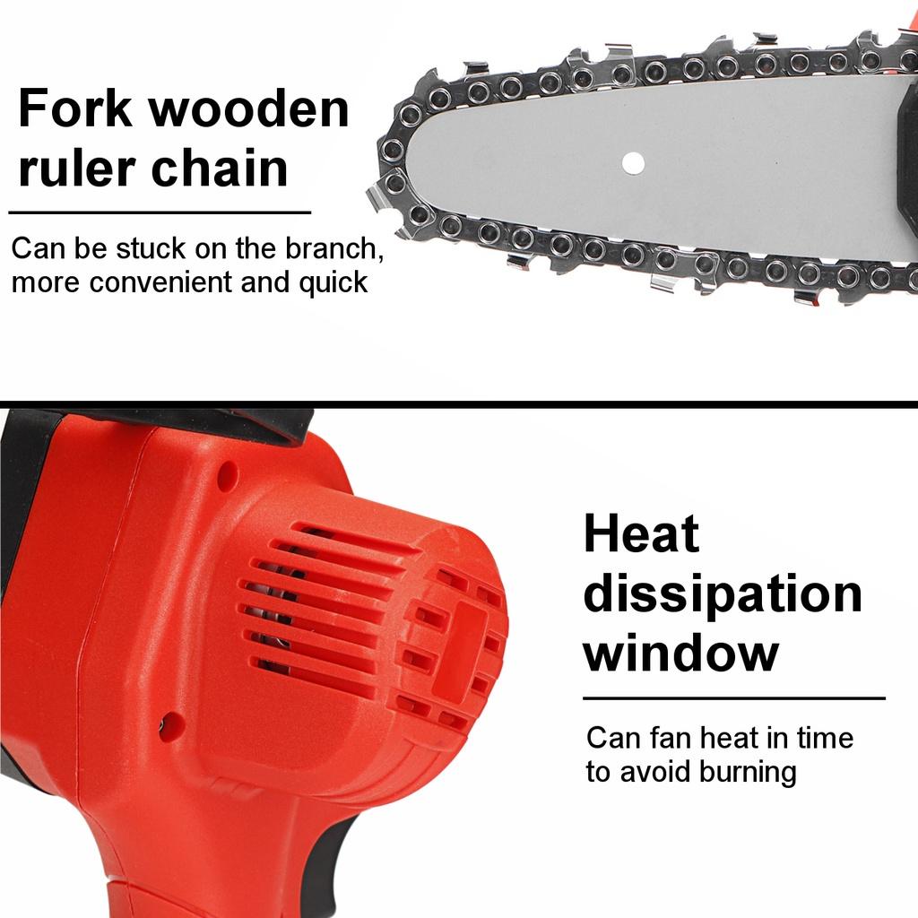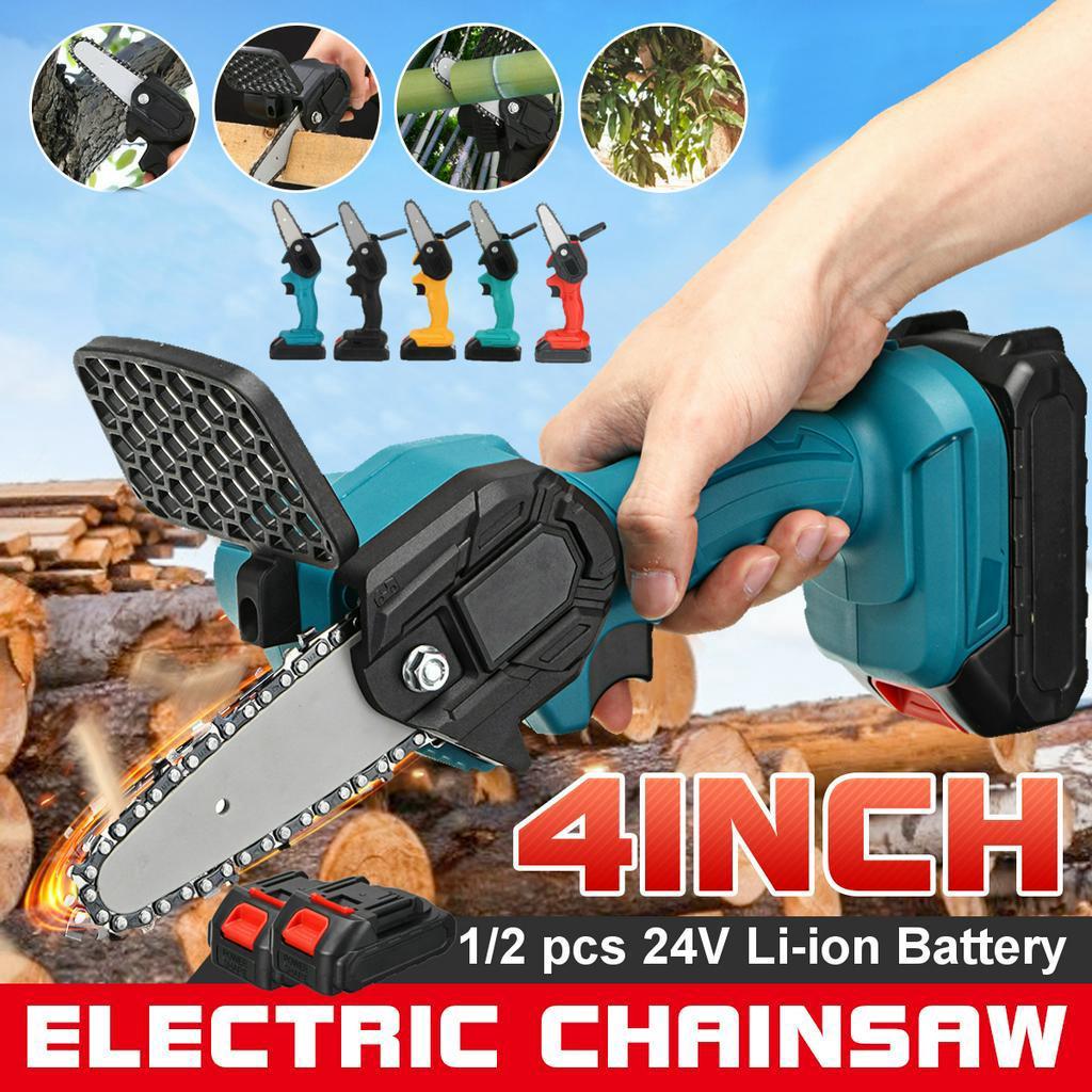 88 В 1080 Вт 4-дюймовая мини-электрическая цепная пила с 2 аккумуляторами, перезаряжаемая деревообрабатывающая обрезка, одноручный садовый электроинструмент