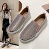 Весна 2025 года, новые повседневные туфли с одной педалью, толстая подошва, круглые туфли, женские мокасины со стразами, одинарные туфли, большой размер