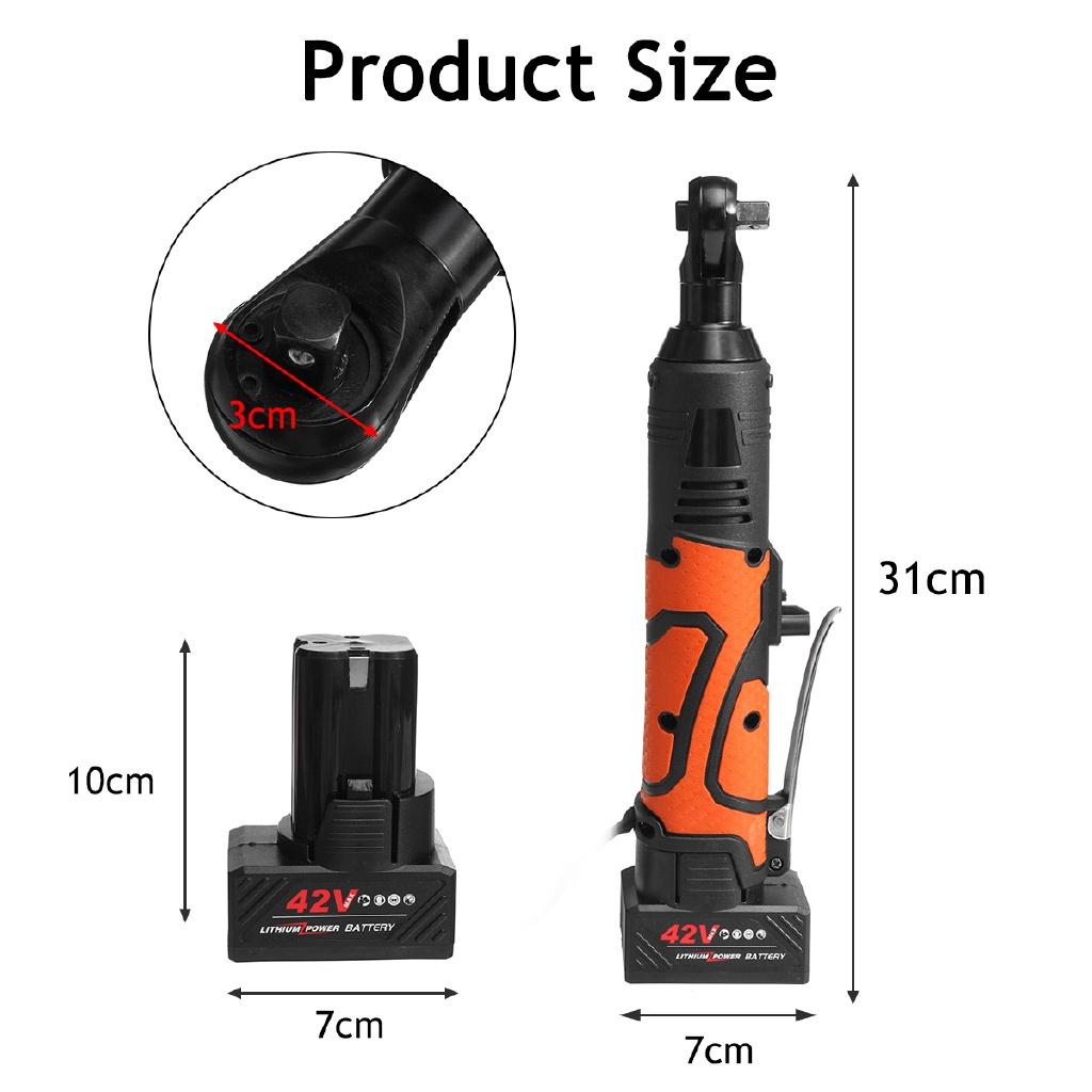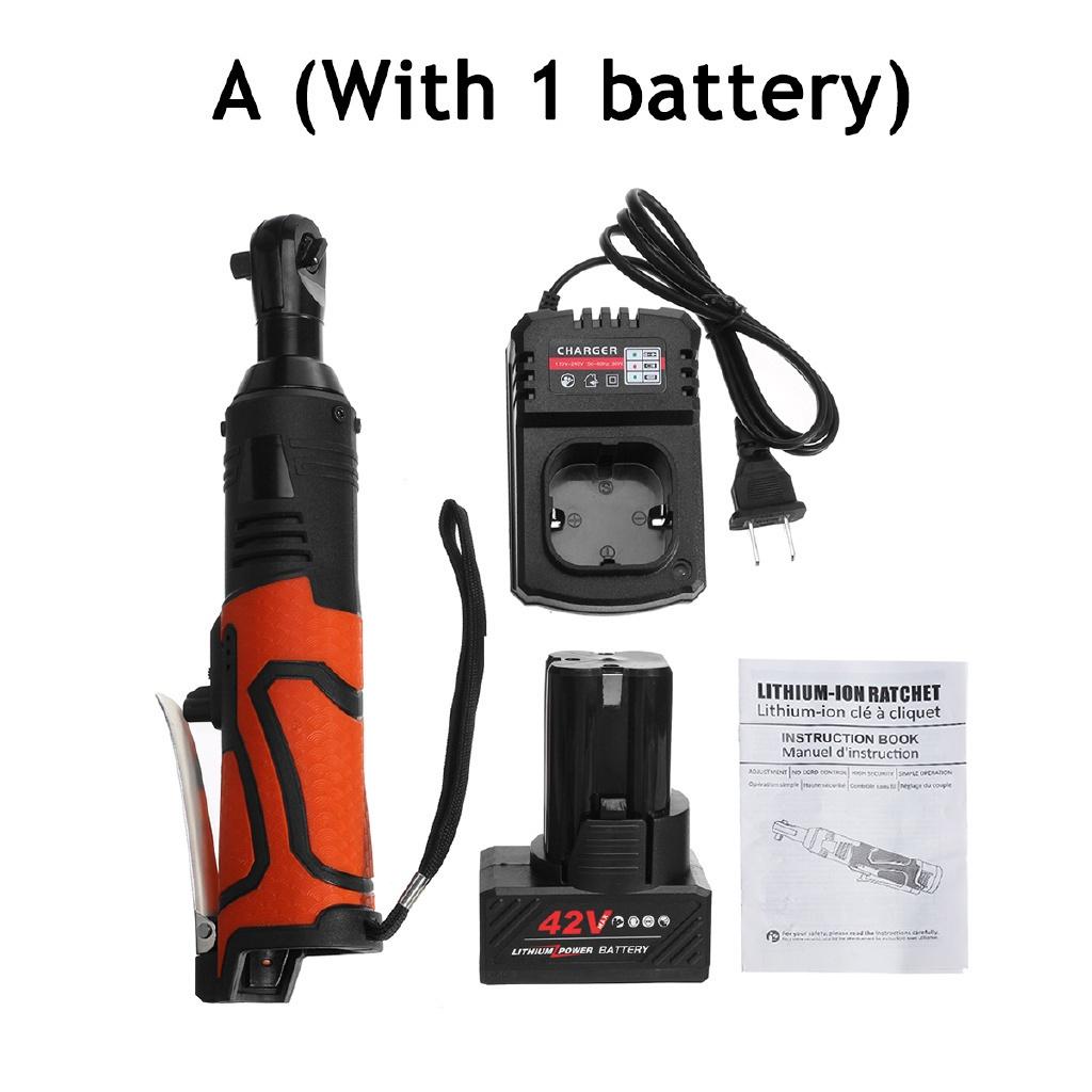 Электрический гаечный ключ 42 В 3/8" беспроводной храповой механизм перезаряжаемый для строительных лесов 90 Н.м угловой гаечный ключ с зарядным устройством 1/2 батареи