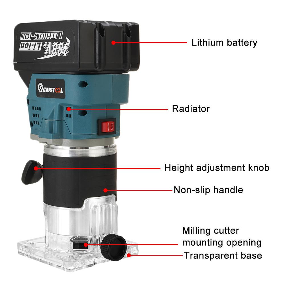 MUSTOOL 388 В 850 Вт Аккумуляторный электрический триммер Деревообработка Гравировально-долбежный фрезерный станок Фрезерный станок по дереву с аккумулятором 1/2