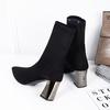 Европейские и американские осенние и зимние новые тонкие сапоги знаменитости из Интернета сексуальные носки на высоком каблуке вязаные сапоги короткие сапоги на толстом каблуке высокие остроносые
