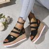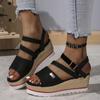 2025 весна-лето женские босоножки на толстой танкетке европейского, американского и зарубежного производства с открытым носком большого размера с пряжкой в одно слово