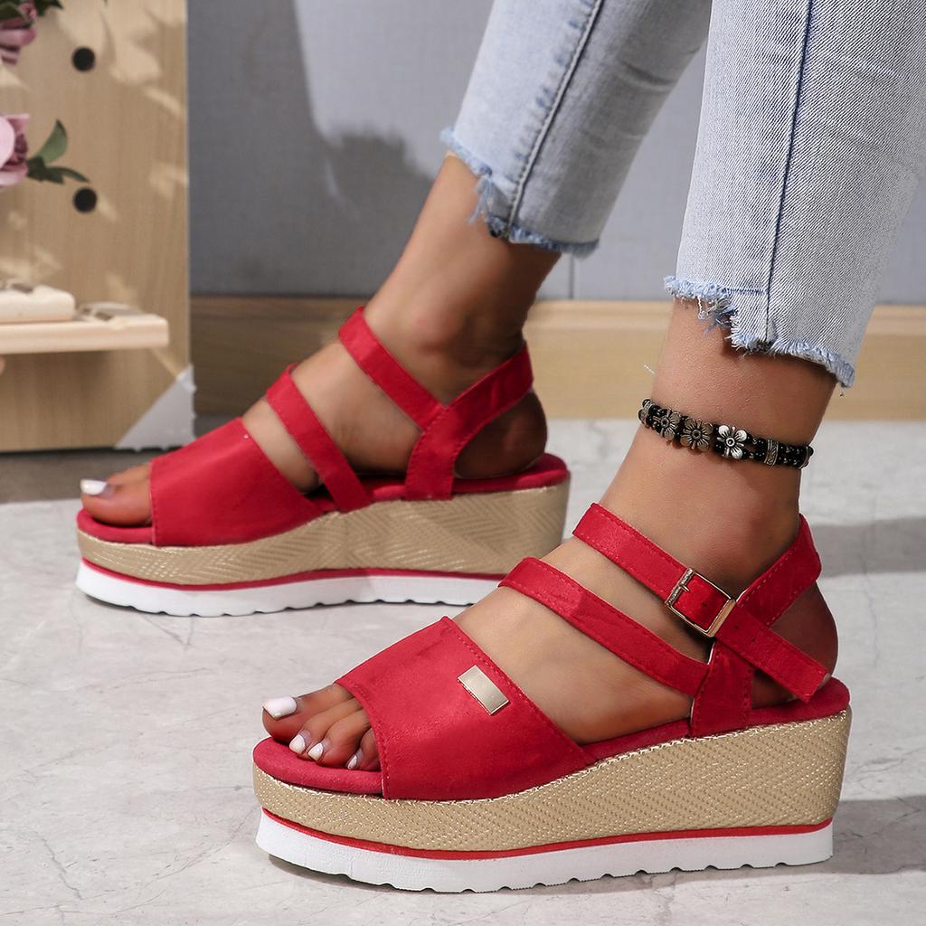 2025 весна-лето женские босоножки на толстой танкетке европейского, американского и зарубежного производства с открытым носком большого размера с пряжкой в одно слово — купить товар онлайн с бесплатной доставкой по всему миру!