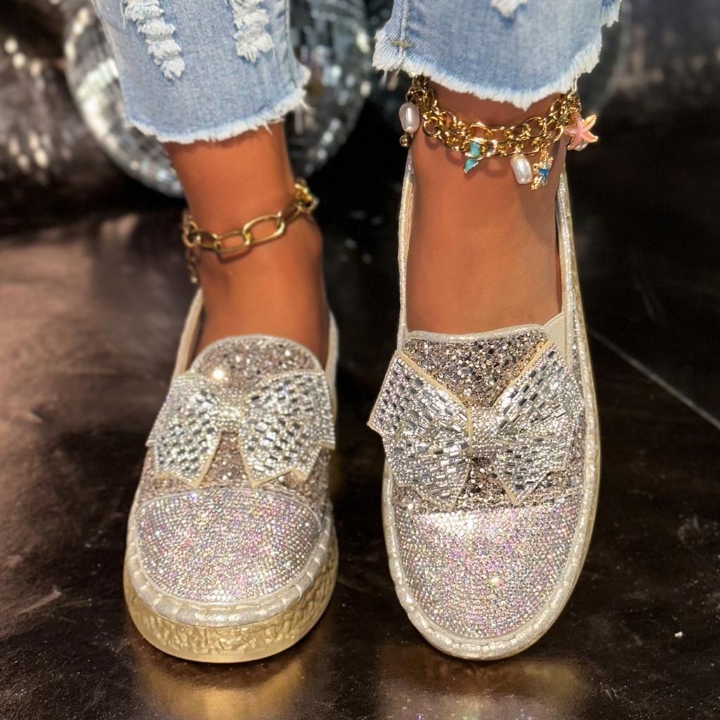 Женские туфли большого размера с одной педалью, ленивые кексы на платформе, повседневные туфли, весна-лето, новые мокасины со стразами и бантом