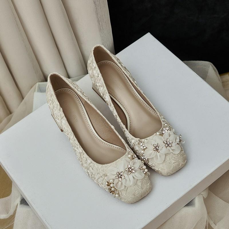 Весна и осень Новый стиль Модные удобные элегантные износостойкие и универсальные туфли-лодочки с цветочным узором и квадратным носком на толстом каблуке