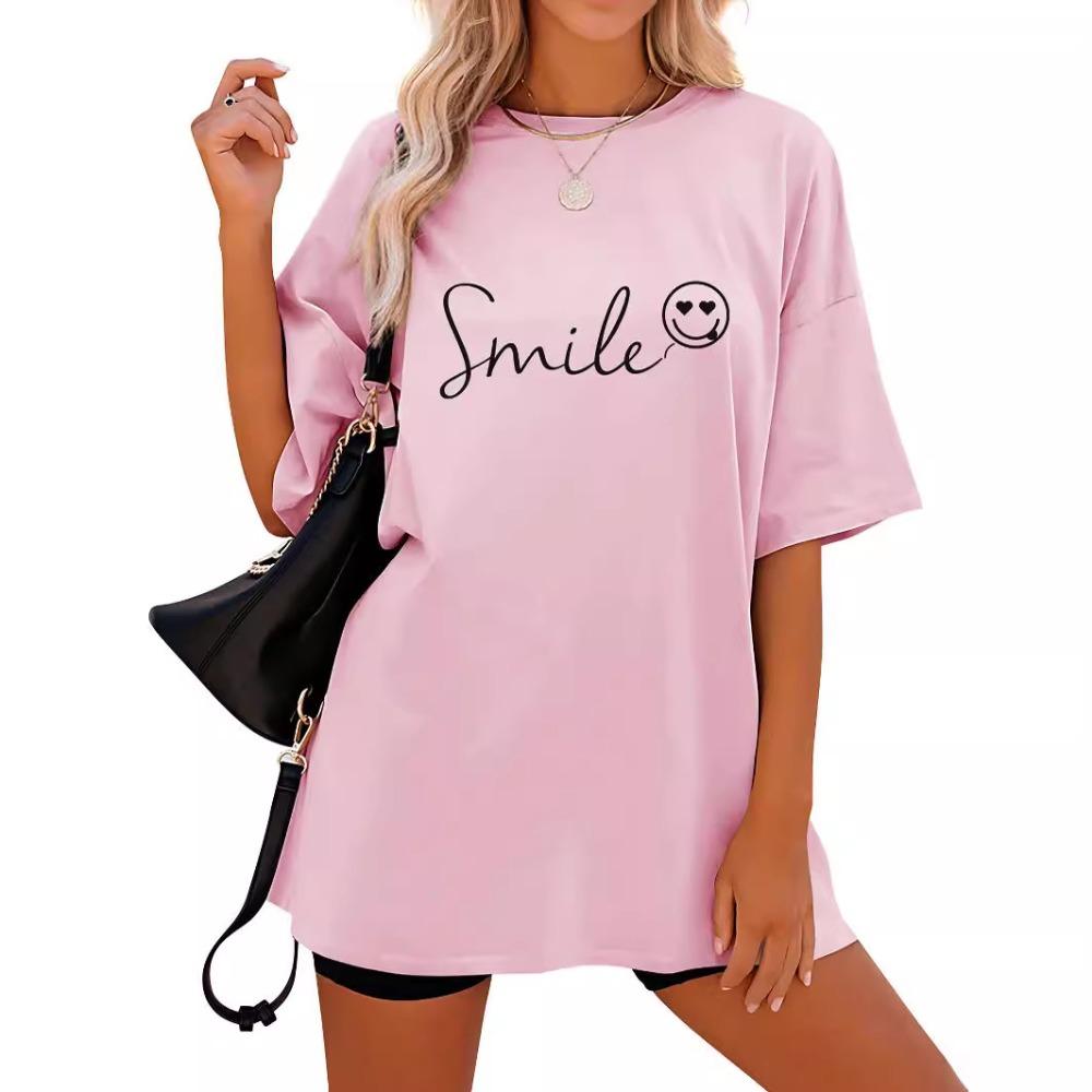 Женская свободная футболка с коротким рукавом и круглым вырезом, напечатанная буквами