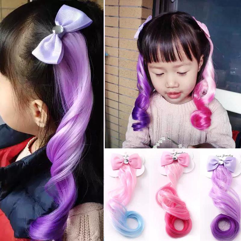 Детская мода, цветной длинный кудрявый парик, бриллиантовый бант, принцесса, заколки для волос, заколки-утиные заколки, подарок для девочек