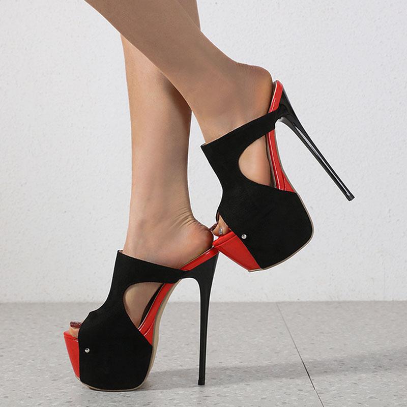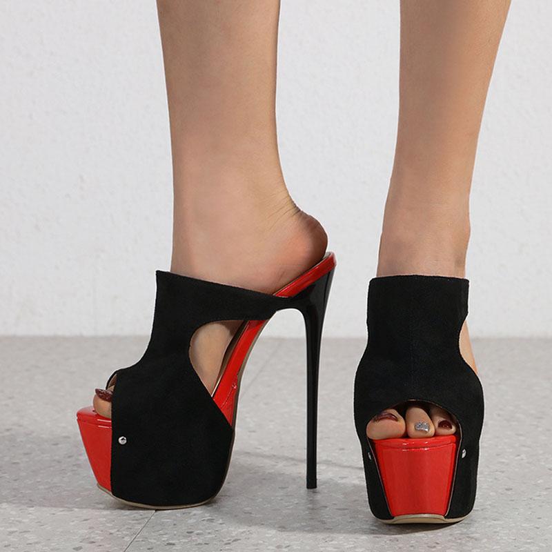 Liyke Летние туфли с открытым носком на очень высоком каблуке, сексуальные тапочки 16 см для женщин, сандалии на платформе с заклепками, туфли для вечеринок на пилоне, туфли-лодочки