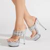 Liyke Модные прозрачные туфли на высоком каблуке с блестками и толстой подошвой для женщин, туфли для банкета, сексуальные босоножки на платформе с открытым носком