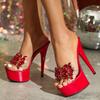 Liyke Сексуальные красные туфли на высоком каблуке Свадебные банкетные туфли Модные туфли с кристаллами и драгоценными камнями Открытый носок Вечерние туфли для стриптиза Женские туфли-шлепанцы на платформе Сандалии Лодочки