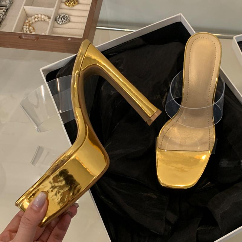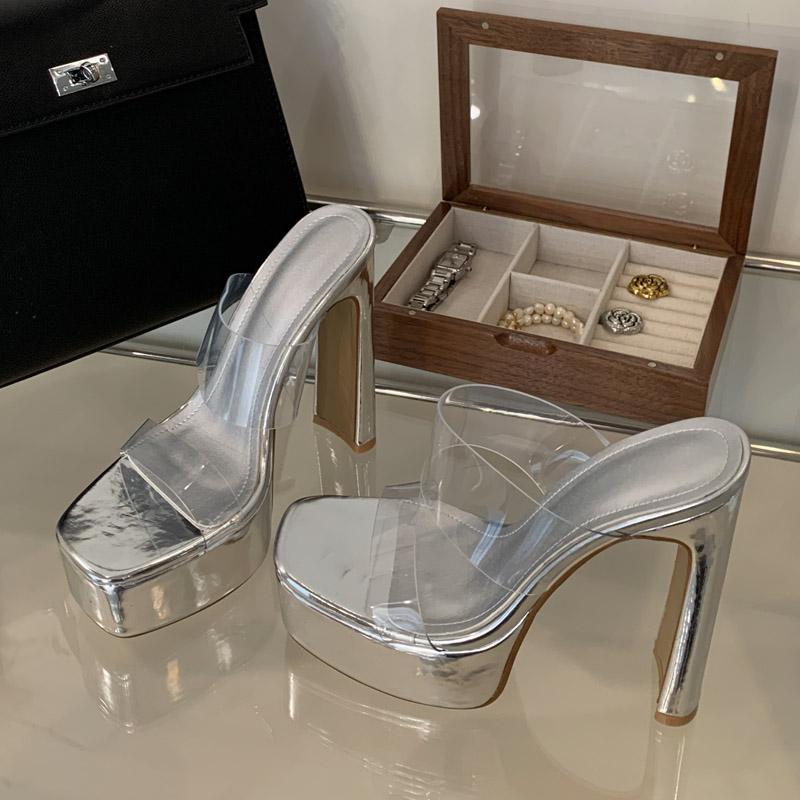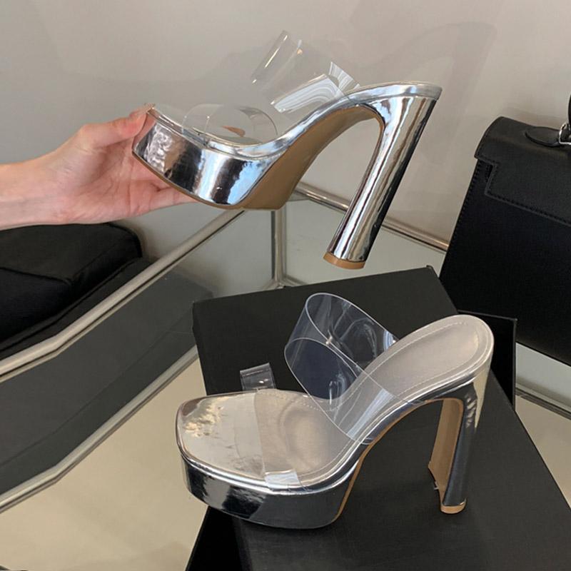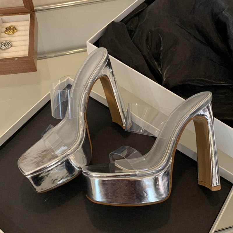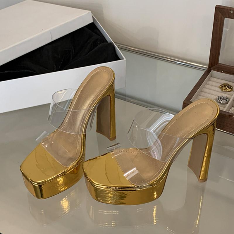 Liyke ПВХ прозрачные женские туфли на платформе с высоким каблуком современные тапочки золотые босоножки сексуальные толстые туфли с квадратным носком для стриптиза