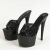 Liyke черные красные туфли на высоком каблуке и платформе женские летние модные прозрачные босоножки из ПВХ с блестками сексуальные туфли для стриптиза с открытым носком