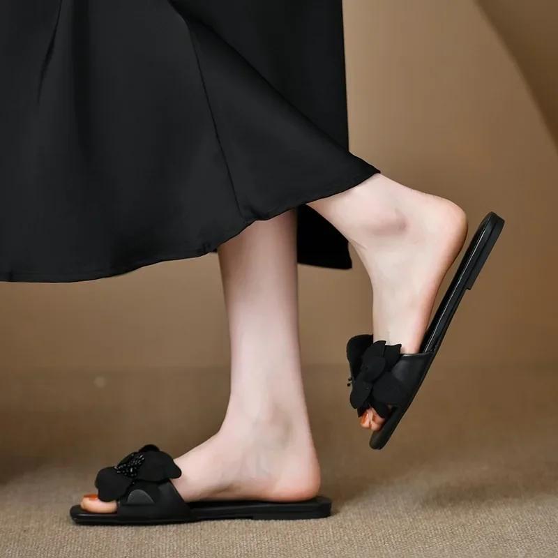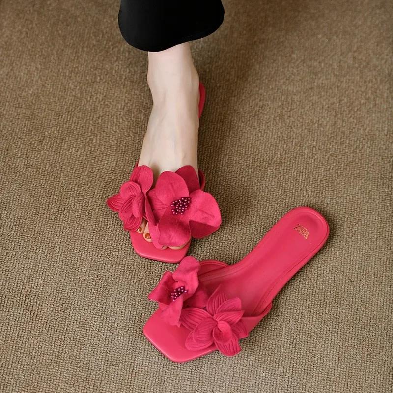 Обувь для женщин Высококачественные женские тапочки больших размеров Модные цветочные современные тапочки Новые тапочки с квадратным носком на плоской подошве Zapatos