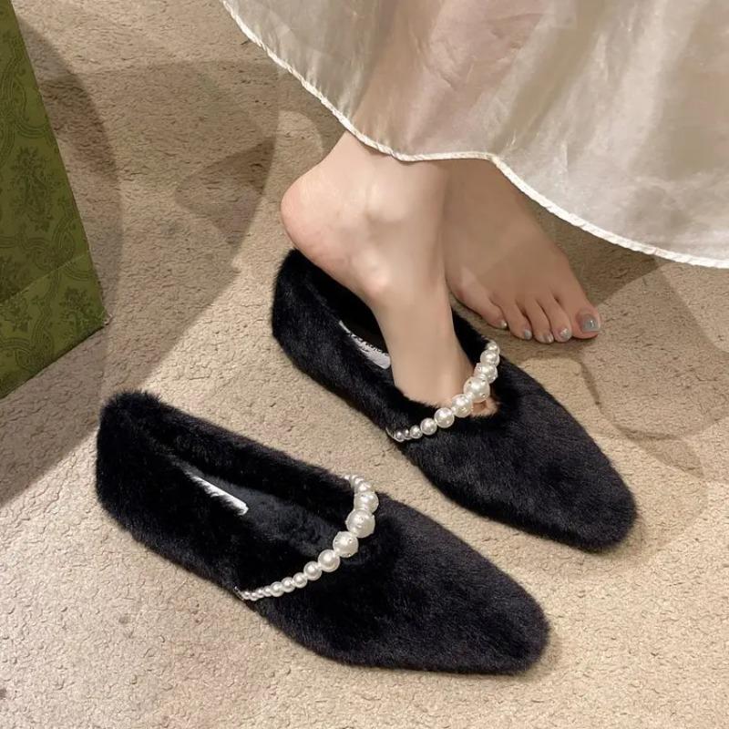 Туфли женские на плоской подошве с коротким вырезом, платье из плюша и резины с коротким вырезом Туфли женские на плоской подошве с коротким вырезом, платье из плюша и резины