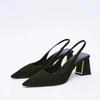 Модные туфли-слингбэки на блочном каблуке для женщин Осенние туфли-лодочки с острым носком Элегантные офисные женские туфли на высоком каблуке Женские удобные сандалии