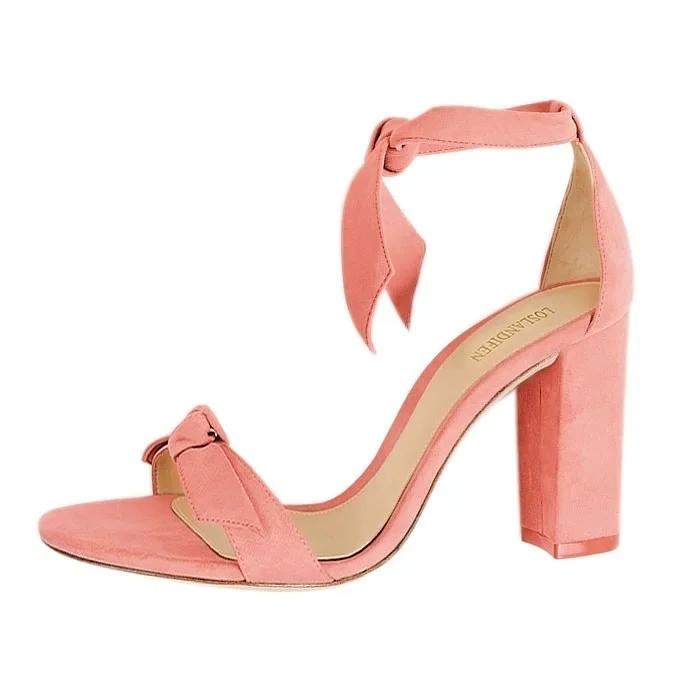 Женские сандалии Летние с бантом Открытый носок Сексуальные ремешки на щиколотке Высокий каблук Женские замшевые туфли-лодочки на толстом каблуке 11 см Свадебные туфли для вечеринки