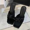Liyke Street женские сексуальные туфли с квадратным носком на очень высоком каблуке, современные тапочки с плиссировкой в виде рыбьей чешуи, сандалии на узкой платформе, женские туфли