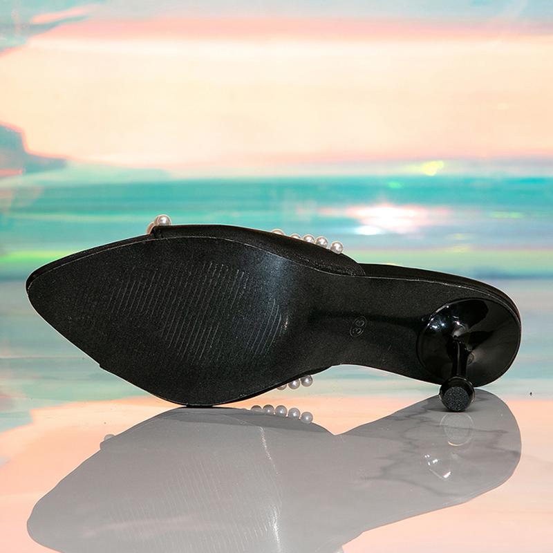 Liyke Summer Fashion Pearl Designer Slides Shoes Slippers For Women Sexy Pointed Open Toe Thin High Heels Gladiator Sandals
